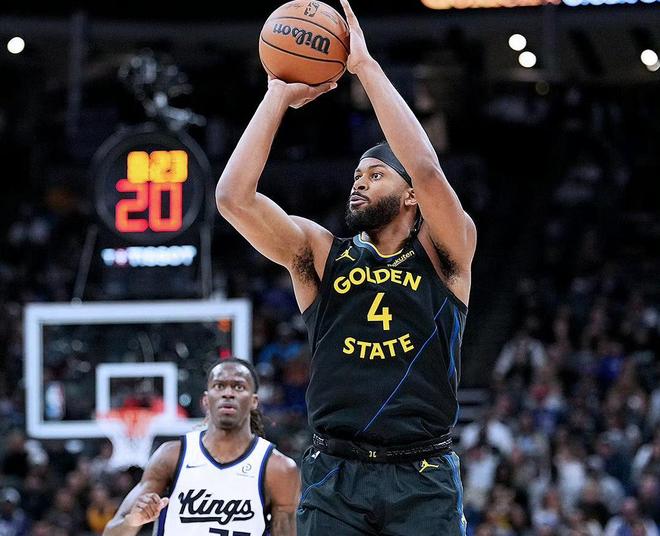 威少打四号位既发挥长处,又掩盖短板,类似乐布朗在掘金的转型效果,上赛季威少和约基奇搭档也试过4号位还不错。威少身高臂长、弹速惊人,若专注防守与篮板,或可进化成顶级功能型大前——火箭的阿门,正是其高大版的年轻威少。今天比赛过程一波三折。首节勇士残阵爆发,库明加、穆迪、理查德火力全开,单节32-25领先7分。国王节奏混乱,投篮打铁,防守漏人。第二节威少站出,带替补冲锋:抢断快攻、抢板二次进攻、外线空位三分稳稳命中。国王不断追分,威少冷静串联,德罗赞中距离跳投复苏,施罗德外线开火,半场追至仅差5分。